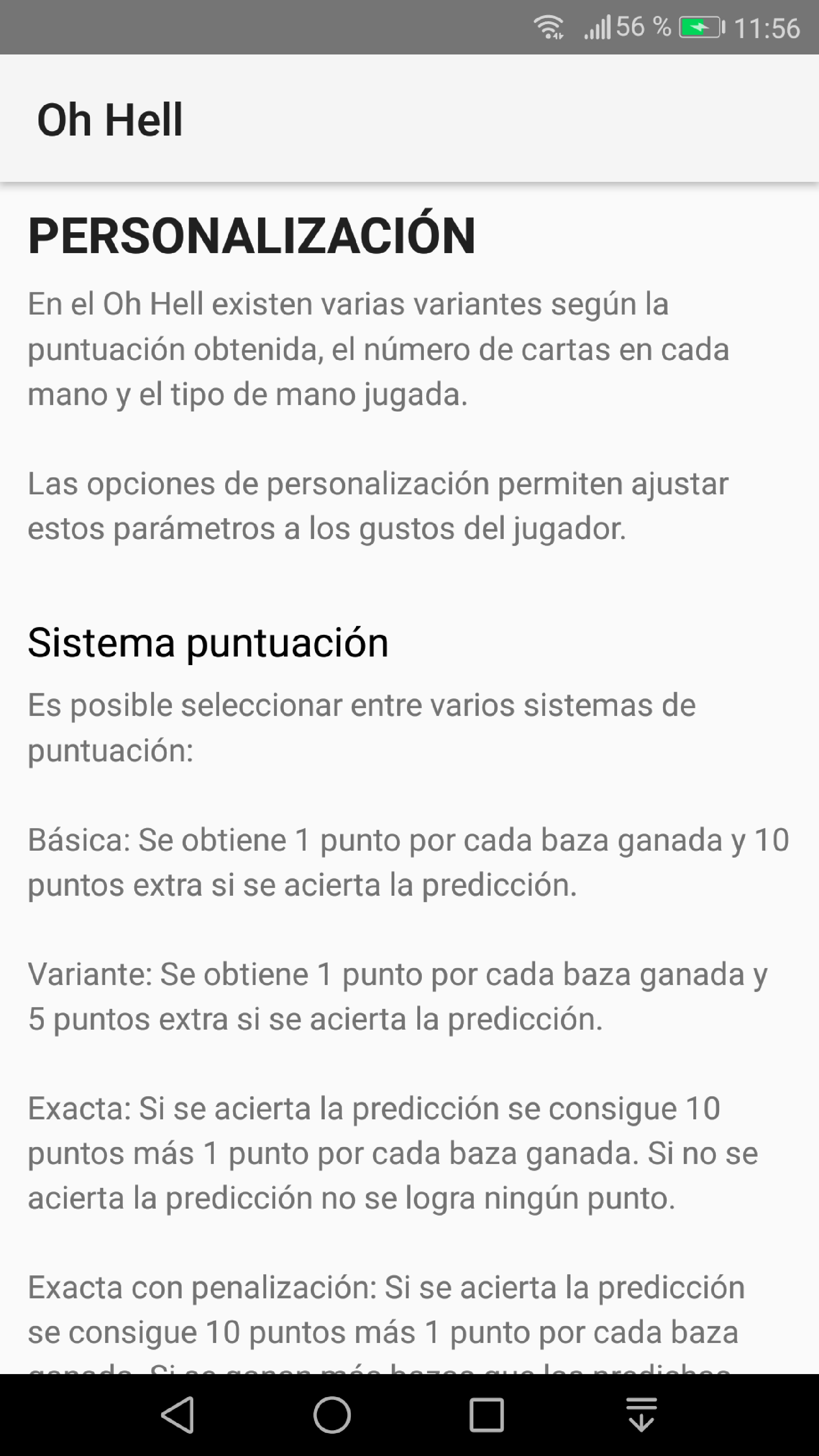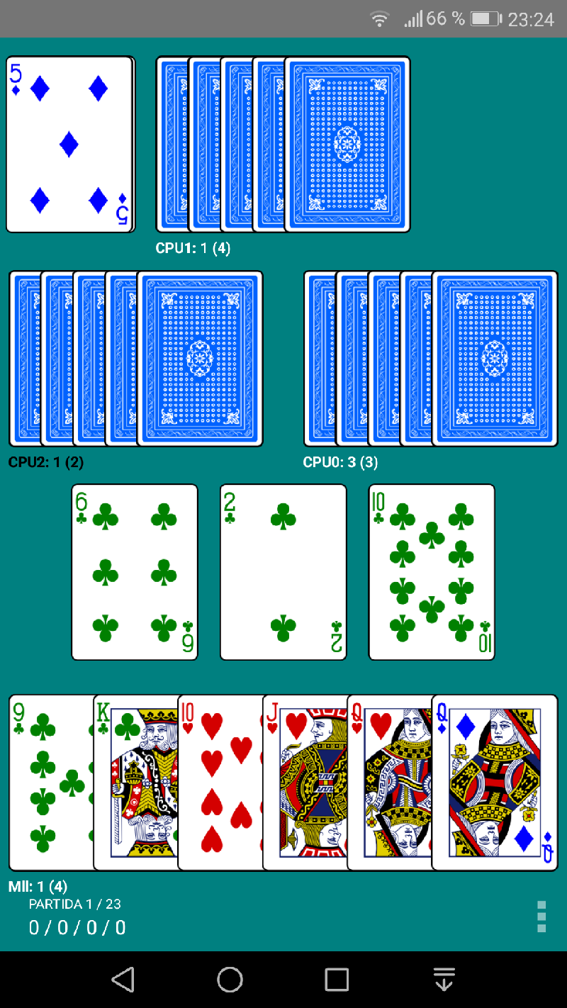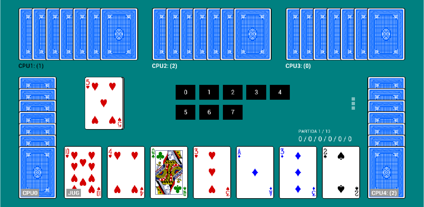 El número de puntos ganados depende de las opciones de personalización (ver apartado correspondiente). En algunos casos se perderán puntos si no se han acertado el número de bazas indicado en la predicción inicial.