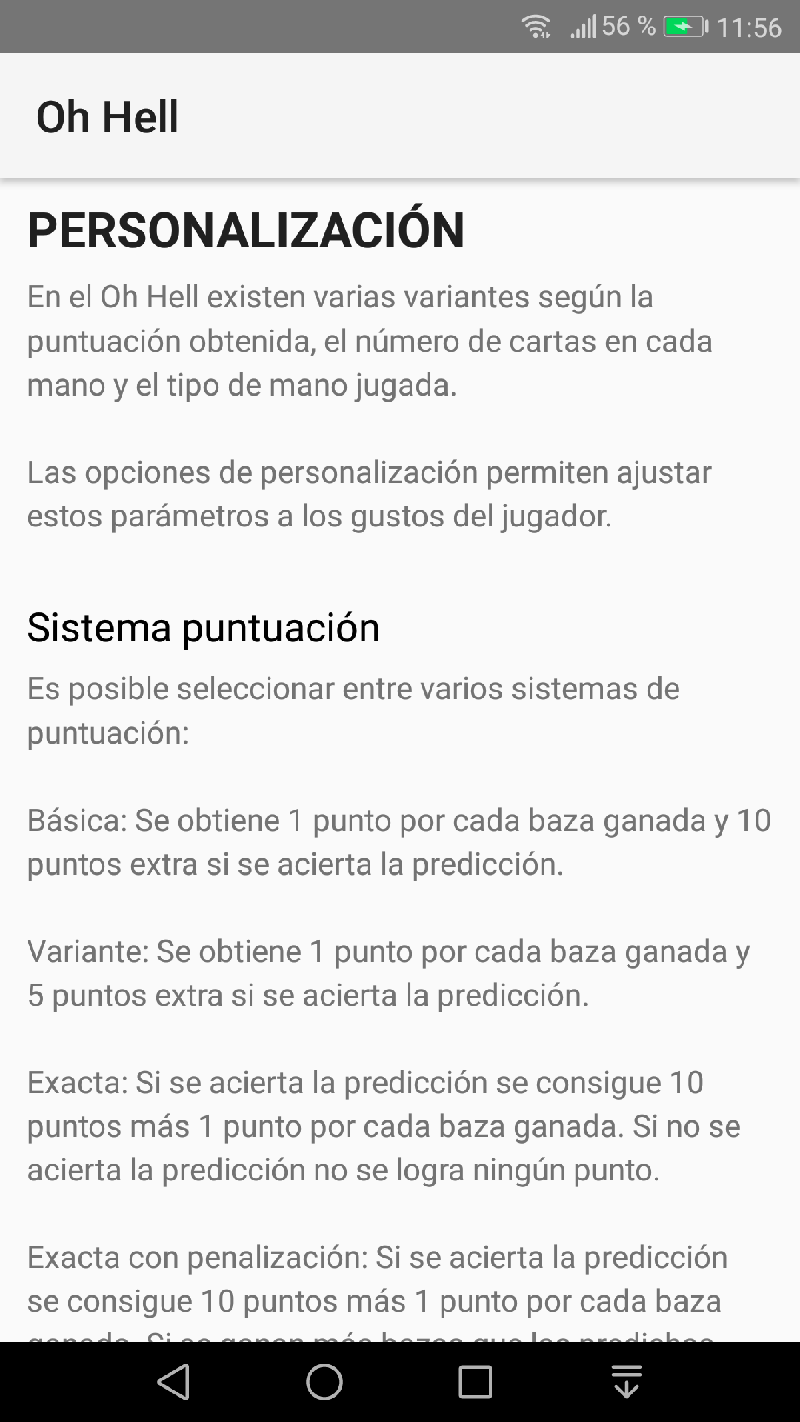 En el Oh Hell gana la partida el que consiga el mayor número de puntos tras jugarse todas las manos establecidas. Se consiguen puntos ganando bazas y acertando en cada mano el número de bazas que se han predicho antes del inicio de la misma.